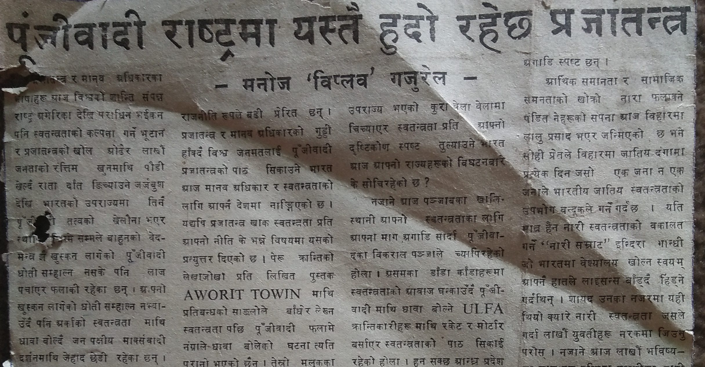 धरातल’ स्तम्भ अन्र्तगत । २०४८ सालदेखी २०५१ सालसम्म राजनैतिक, सामाजिक, सांस्कृतिक बिषयमा कलम चलाएँ । २०५२ सालदेखी यो ‘विप्लव’लाई त्यो विप्लवको जिम्मा लगाएर कलाकार मनोज गजुरेल बन्न थालें ।