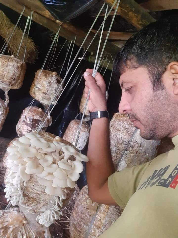 उनले अगाडि थपे- ‘मान्छेका जिउने आधार अनेक हुन्छन् । कोरोनाले नसोचोस्, मान्छेलाई भोकै मार्न सक्छु ।’ कोरोना आतंकले कलेज बन्द भएपछि घिमिरे झापा फर्किएका थिए । लकडाउन लम्बिदै गएपछी घरभित्र च्याउ फलाउन शुरु गरेका थिए ।